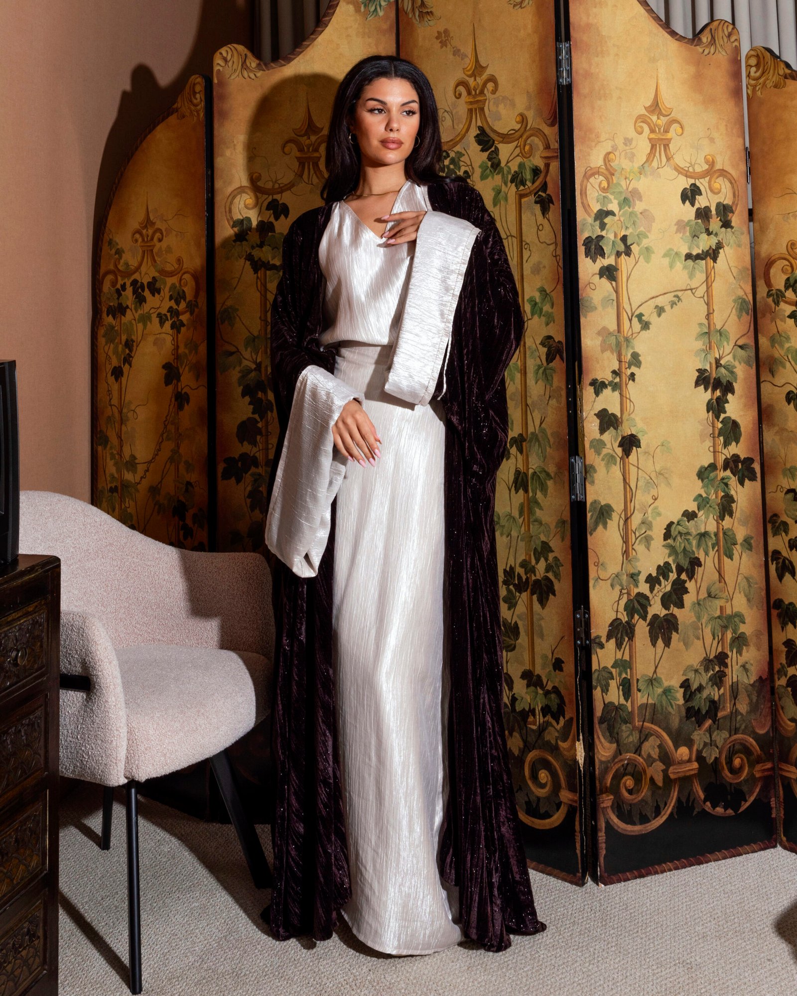 A luxurious three-piece set crafted from sparkling velvet, designed to feel truly indulgent. Perfect for elegant evenings and special nights that call for something extra fancy.